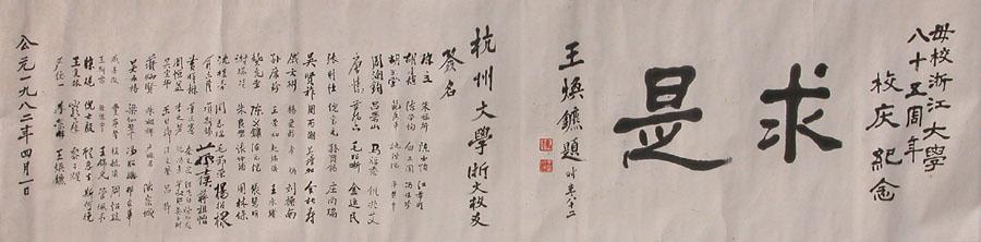 这里既有艺术大师的精品、名人学者的墨迹、科学家的佳作,也有广大校友的艺术创作和浙大师生追求书画艺术的足迹。从这一幅幅书画作品中,你将接收到美学教育和艺术熏陶,会感受到历届校友对母校的拳拳之情,更能体会出浙大师生奋发向上、"求是创新"的精神风貌。总之,你可以从一个侧面领略到浙江大学这所中华百年高等学府深厚的文化积淀和艺术底蕴。