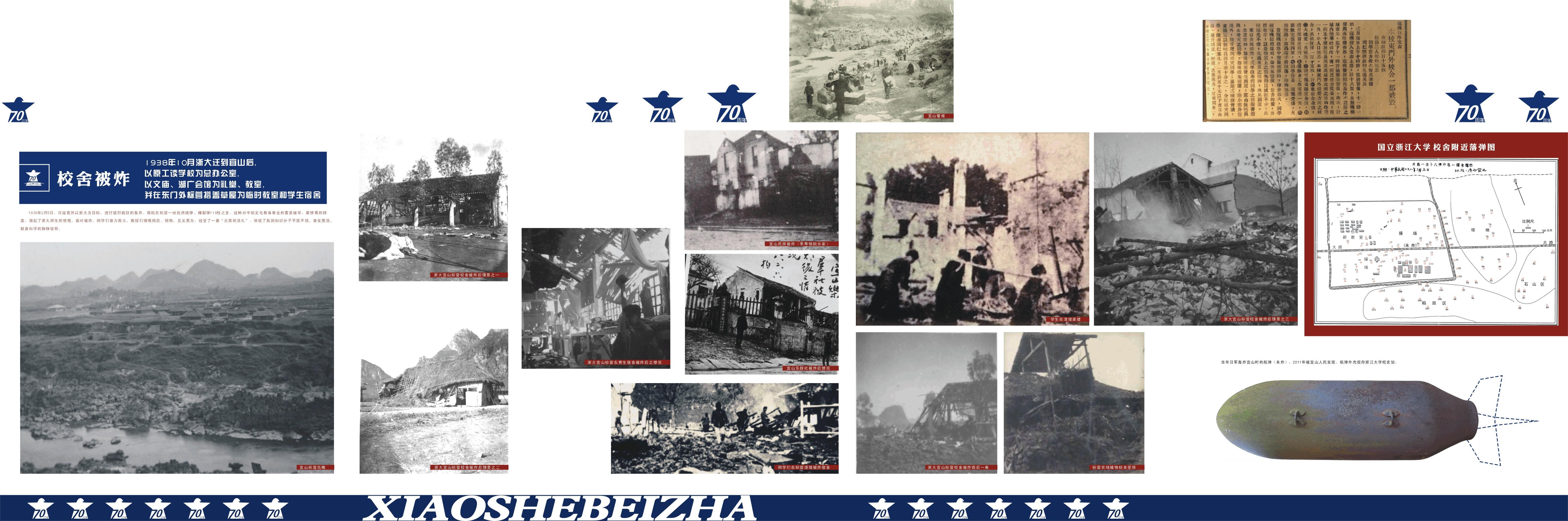 1937年“七七事变”后,抗日战争全面爆发。面对日本侵略军的大规模军事进攻和对中国高等教育的蓄意破坏,浙大师生肩负“科教救国”的重任,在“求是”精神的激励下,以顽强的意志,乐观的信念,西迁办学,宣传抗日,在绝境中奋力实现自身价值。为纪念中国人民抗日战争暨世界反法西斯战争胜利70周年,档案馆特举办“抗日战争时期的国立浙江大学”展。展览以“七七事变前的国立浙江大学校园”、“浙大西迁”、“读书不忘救国”、“求是校训”、“自觉担当”、“东方剑桥”等八个主题,两百余幅图片,展现了这段坚强而辉煌的历史。