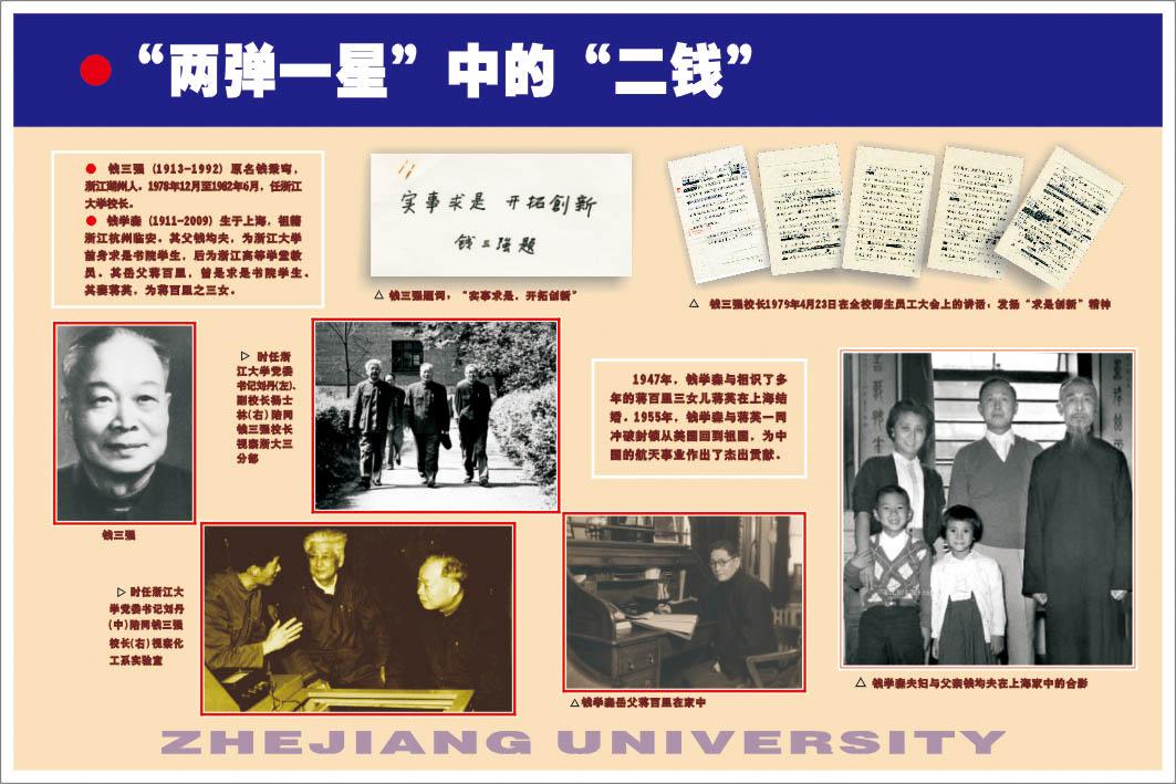 为了这一声,决定命运的东方巨响,浙大人也付出了许多,如果讲,获得“两弹一星功勋奖章”王淦昌、程开甲、赵九章、钱三强、钱学森,是国防科技事业这座宏伟金字塔的塔尖,还有许多人构筑了它的塔身和塔基。这些人群中,既有浙大教师、学生,还有他们的家属。为了铭记他们,浙大档案馆在迎接120周年校庆之际推出“浙江大学·两弹一星”展,展现浙江大学勇于自觉担当国家责任的勇气和魄力。